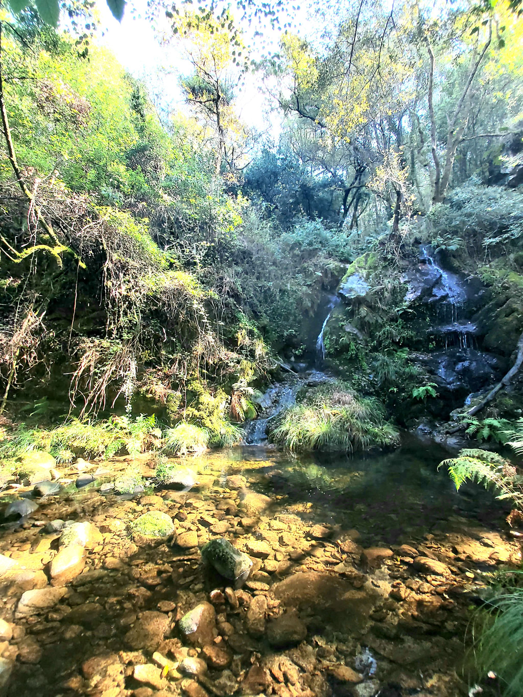 Enquanto se habitua à água a fluir, contemple a deslumbrante queda de água da foz da ribeira da lavandeira e sua paisagem envolvente. O percurso prossegue e nesta porção está sobreposto ao percurso OFR1 Rota dos Rios e Levadas. Para os olhares mais atentos, são muitas as marmitas de gigante (erosão provocada pela água nas pedras), de vários formatos e tamanhos, encontradas no leito do rio.