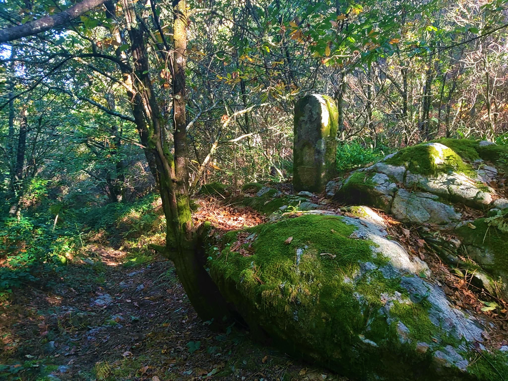 Protegida pelos carvalhos e castanheiros envoltos pelas “barbas de velho” (Líquenes plumunária) que pendem dos ramos, surge a famosa pedra “poisadoira”, envolta em histórias e simbolismo devido à sua ancestral função, de poisar os caixões durante os funerais para descansar e rezar.
